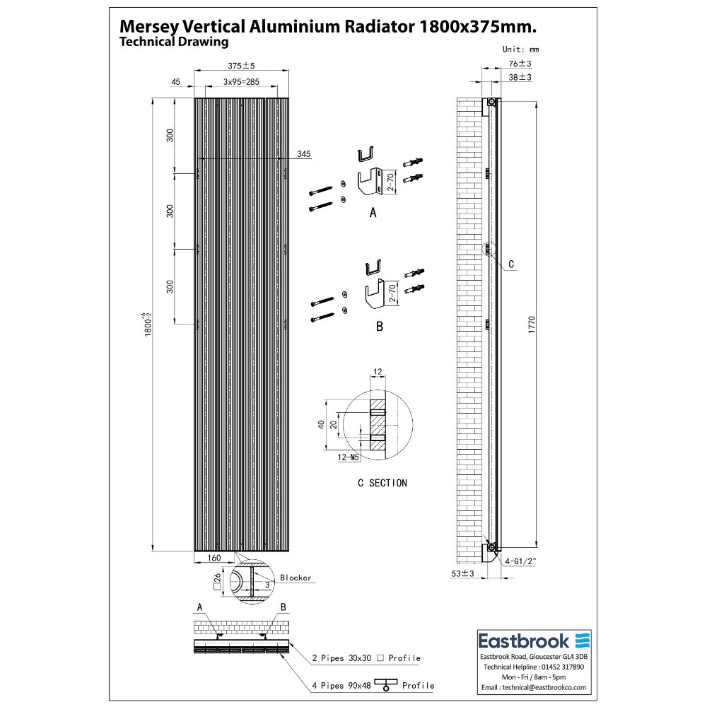 The Eastbrook Mersey Aluminium Designer Radiator is a modern, sleek solution for efficient heating in your home. With a 76mm depth and a stylish Matt White finish, it offers excellent heat conductivity while remaining lightweight. Made from aluminium, it heats up quickly and requires a low water volume. The radiator comes with chrome cover caps on both the top and bottom, enhancing its contemporary look. It is tested to BS EN 442 standards and comes with a pre-fitted flow diverter. Suitable for indirect heating systems only, it also requires a corrosion inhibitor to be added and maintained within the system.