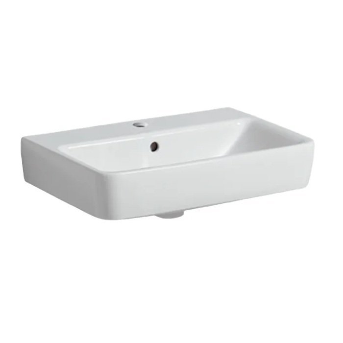 the geberit selnova compact wall hung vanity unit combines modern design with practical functionality, measuring 604mm in height, 500mm in width, and 367mm in depth. made from high-compressed three-layer chipboard with a moisture-resistant finish, it features a rectangular vitreous china basin with overflow and a centrally positioned tap hole. the unit includes one soft-closing door with handle and a movable shelf inside for convenient storage. it comes complete with basin, delivered preassembled with fastening materials included. tap and waste are not supplied. this unit is fsc certified and easy to install, with images shown for illustration only.