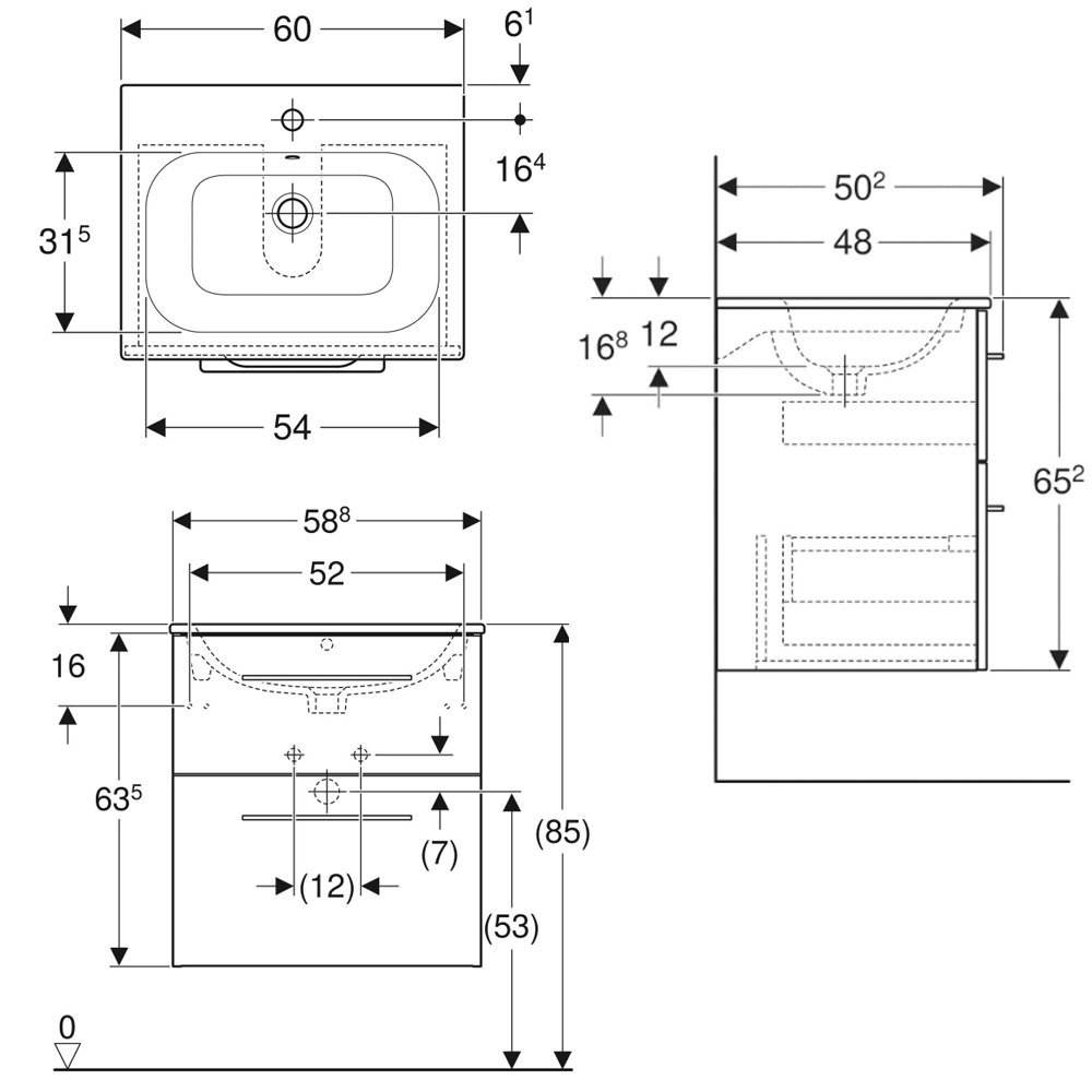 the geberit selnova wall hung vanity unit features a modern rectangular design with dimensions of 635mm height, 588mm width, and 480mm depth. made from high-compressed three-layer chipboard, it is moisture-resistant and easy to install. the unit includes a fine fireclay basin measuring 168mm high, 600mm wide, and 502mm deep, with one central tap hole and overflow. it has two soft-closing drawers with handles for practical storage. delivered preassembled and complete with basin, tap and waste are not included. available in white, lava, hickory, and light hickory finishes, it offers style and functionality.