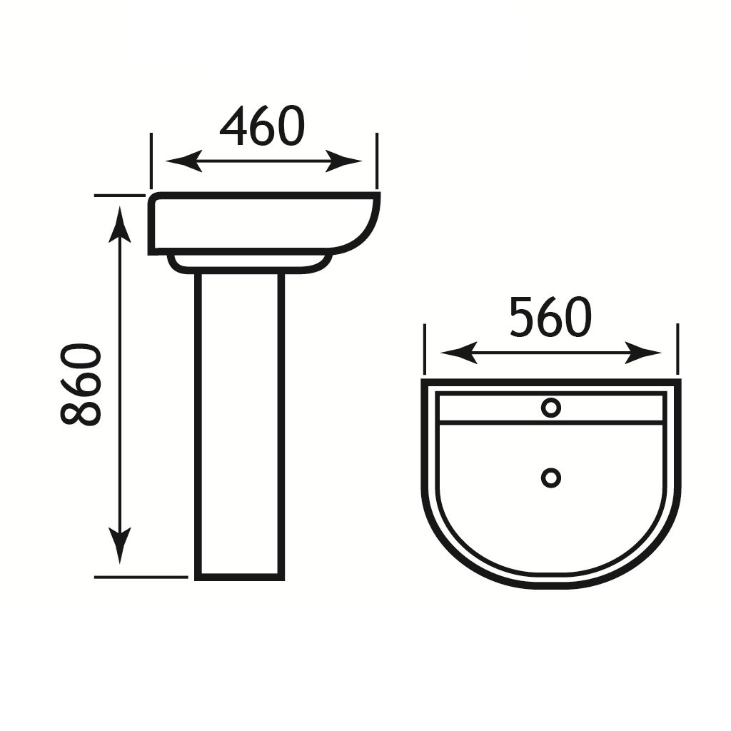 The Eastbrook Crowthorne Full Pedestal Basin is a sleek and modern option for your bathroom, featuring a white ceramic finish and a rectangular shape. With a height of 160mm, width of 560mm, and depth of 460mm, it provides ample space for daily use. The basin is wall-mounted and includes a central tap hole. The full pedestal (height 690mm, width 160mm, depth 175mm) adds stability and a clean finish. The product comes with an overflow and fixings, and is easy to install and use. It is covered by a 2-year guarantee. Tap and waste are not included, and images are shown for illustration purposes only.