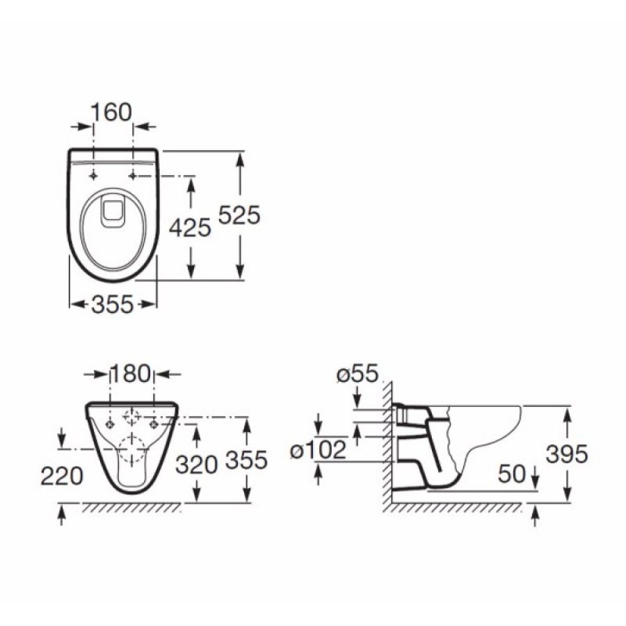 - Toilet Seat Hole Centres : 160mm